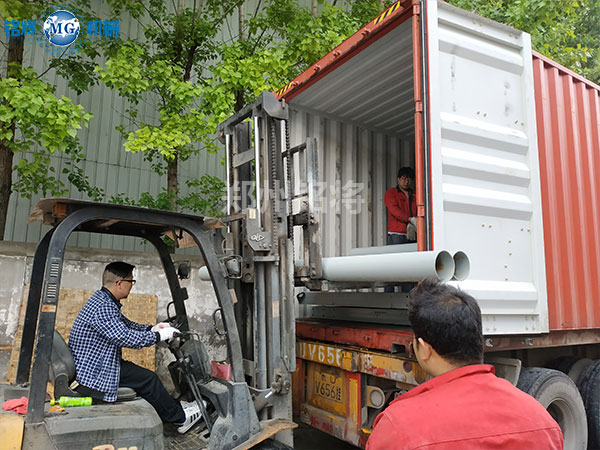 阿聯酋不銹鋼保溫砂漿滾筒混合機生產線發貨,本套生產線由鄭州銘將生產制作并發貨,時產10噸/時,成品不破壞玻化微珠物理形狀,保溫效果好。
