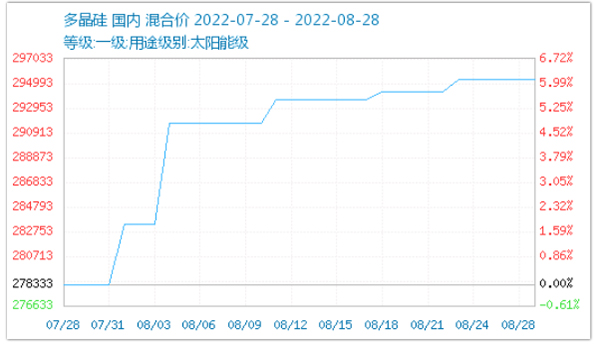 光伏產業鏈,多晶硅報價從8月初的278333元/噸漲至294993元/噸,大漲16660元。