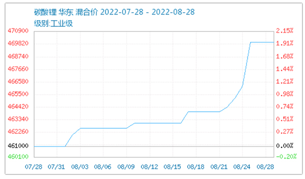 有料網了解到,近日鋰價持續上漲,企業現貨資源惜售為主。根據生意社數據,碳酸鋰近期價格持續上漲,自461000元/噸漲至469820元/噸。